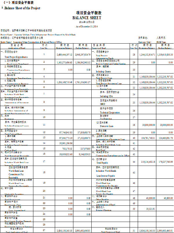 我们审计了世界银行贷款辽宁中等城市基础设施交通项目2014年12月31日的资金平衡表及截至该日同年度的项目进度表、贷款协定执行情况表和专用账户报表等特定目的财务报表及财务报表附注(第6页至第14页)。